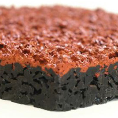 Το στρώμα ψεκασμού αποτελείται από ένα έγχρωμο, μονοσύστατο σύνδεσμο πολυουρεθάνου και ταιριάζοντα έγχρωμα κόκκους καουτσούκ για ένα τελικό στρώμα φθοράς.